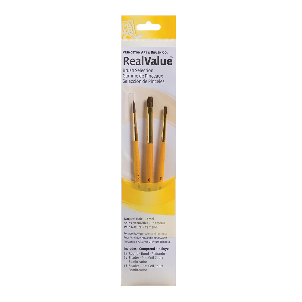 Choose between synthetic golden and white taklon, natural bristle or camel hair or combo sets that contain a variety of sizes and shapes. Real Value brush sets are a great quality at an affordable price!